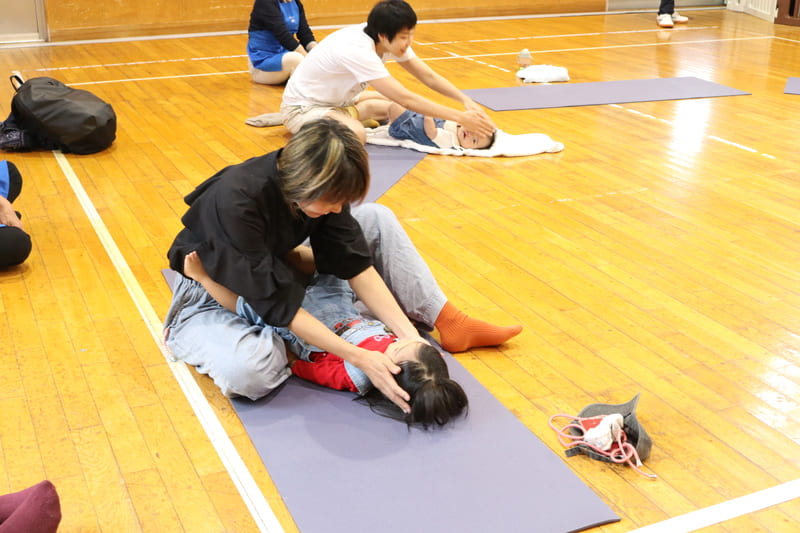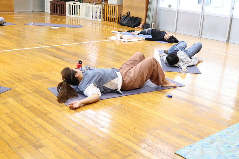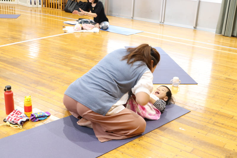 「2歳の子どもを抱っこしていることが多く、肩こりがひどいので、今日体の色々な所が伸びてスッキリしました。『2歳過ぎの子どもも触れ合いはまだ楽しいんだな』と思って、家でもやってみたいと思いました。(佐藤様)」